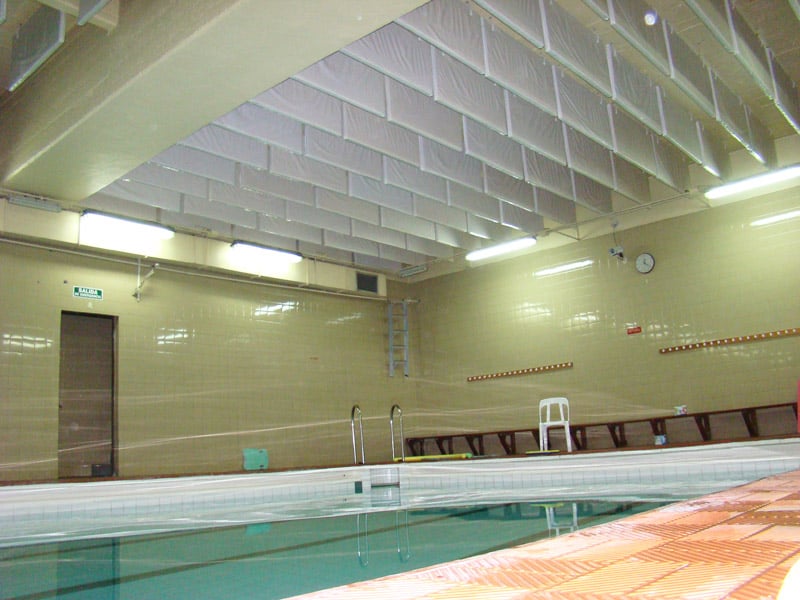 Los tratamientos acústicos con los Baffles Fonoabsorbentes Fonac representan reducciones de entre 3 a 6 dB (A) de atenuación sonora y variaciones sustanciales del tiempo de reverberación.